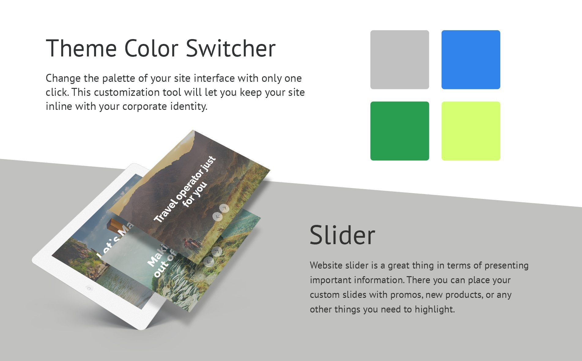 | Возможности: | Адаптивный, Административная панель, Bootstrap, Выпадающее меню, Google карты, Демо контент, Табы, Пакет быстрого запуска, Advanced Theme Options, Блог, Галерея, Forum, HTML 5, JQuery, HTML plus JS, Parallax |
