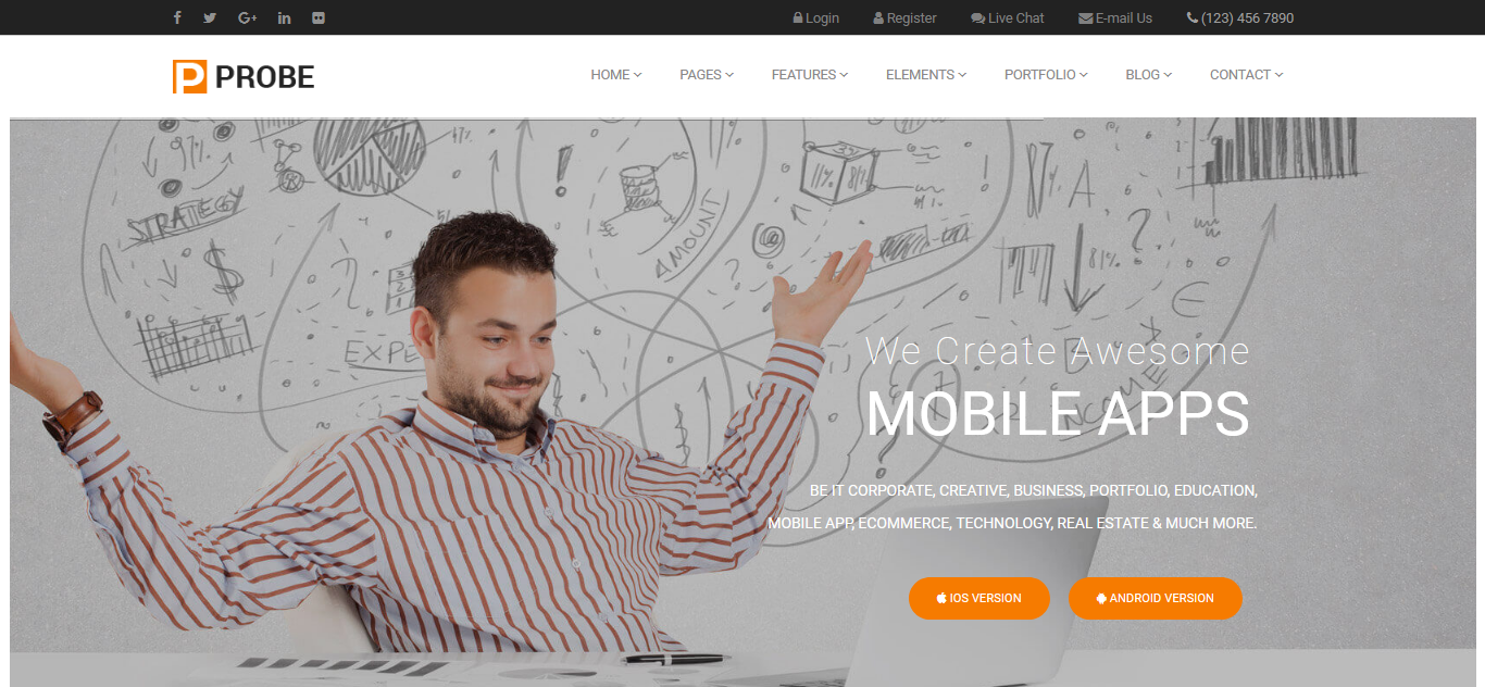 Probe - это отзывчивый, чистый и профессиональный шаблон Joomla (Desktop, планшет, мобильный телефон). Он поставляется с 25+ Multi и 5 одностраничными макетами, множеством внутренних страниц, потрясающими слайд-шоу и цветовыми вариациями. Простой в настройке и полнофункциональный дизайн. Создайте выдающийся сайт в считанные минуты!Особенности темы Probe Joomla: